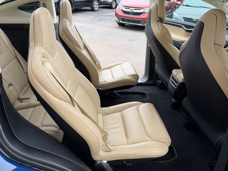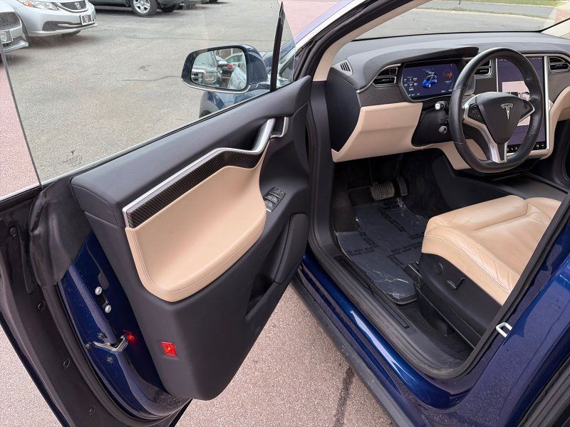 Experience the future of driving with the 2017 Tesla Model X 100D, a masterpiece in automotive innovation. This stunning SUV, dressed in an elegant Deep Blue Metallic finish, combines cutting-edge technology with luxury and performance. With its electric motor delivering an impressive 417 horsepower and all-wheel drive capability, this vehicle offers a smooth yet exhilarating ride. The six-seat interior ensures ample space for family or friends while providing ultimate comfort through heated leather seats and a rear air conditioning system.
